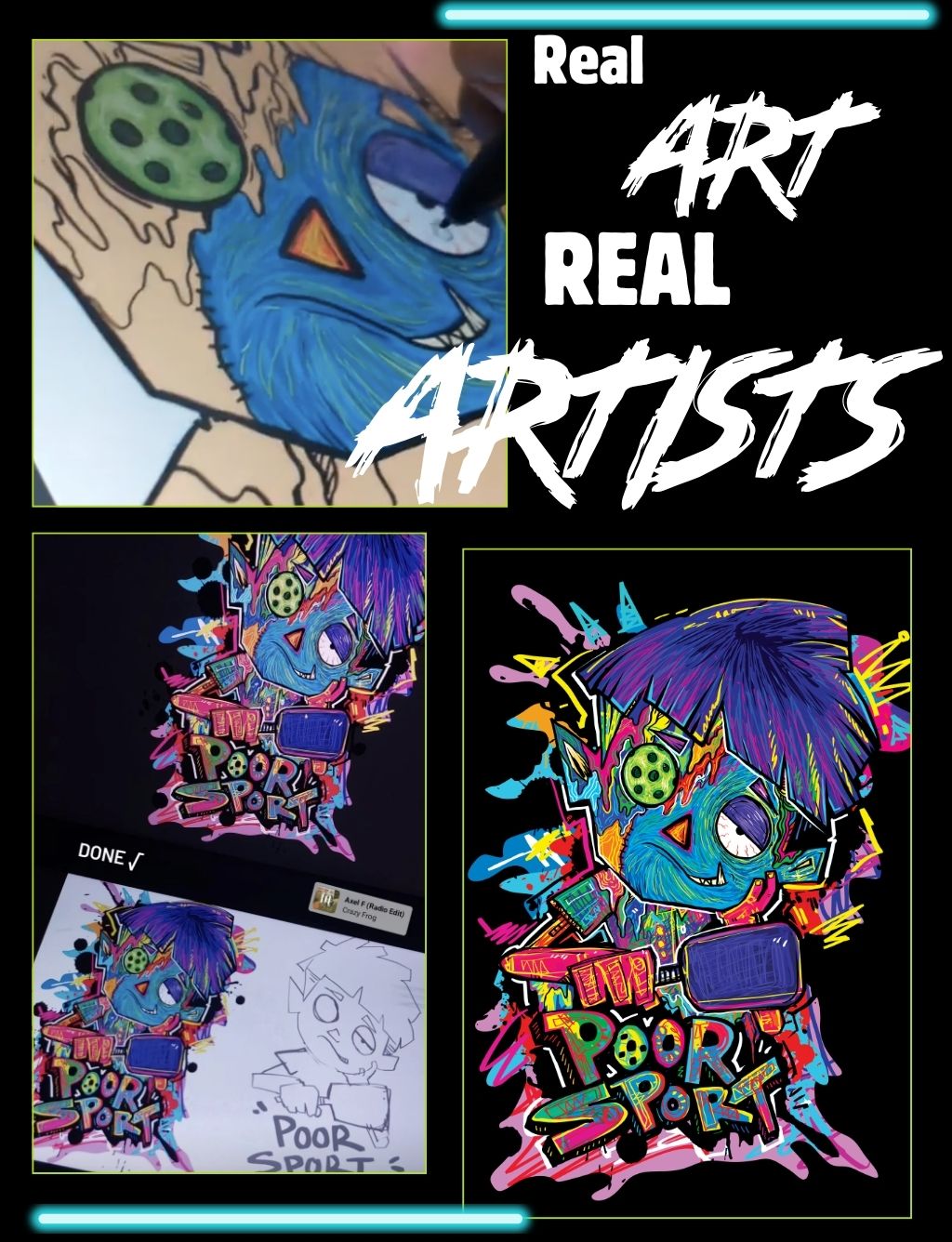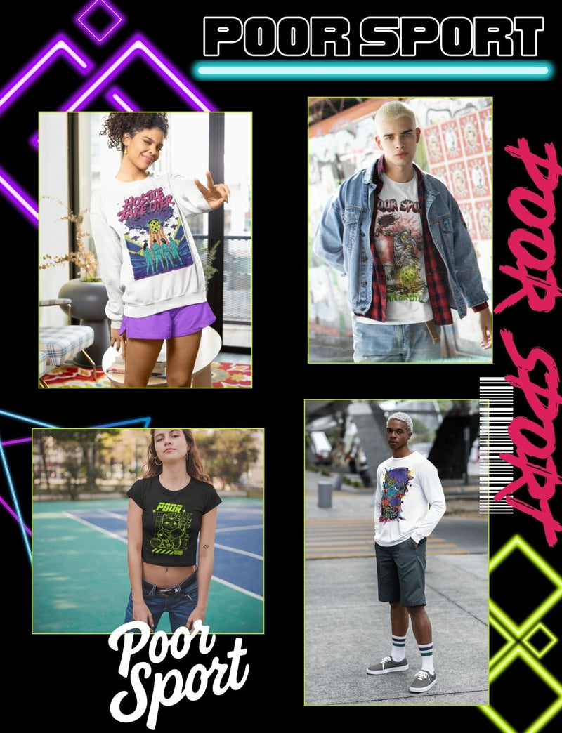 Poor Sport is powered by independent artists from around the world, each bringing a distinct perspective shaped by their culture, community, and lived experience. No A.I., just original creatives building amazing designs for you. Meet the artists, explore their work, and see the vision behind the designs.